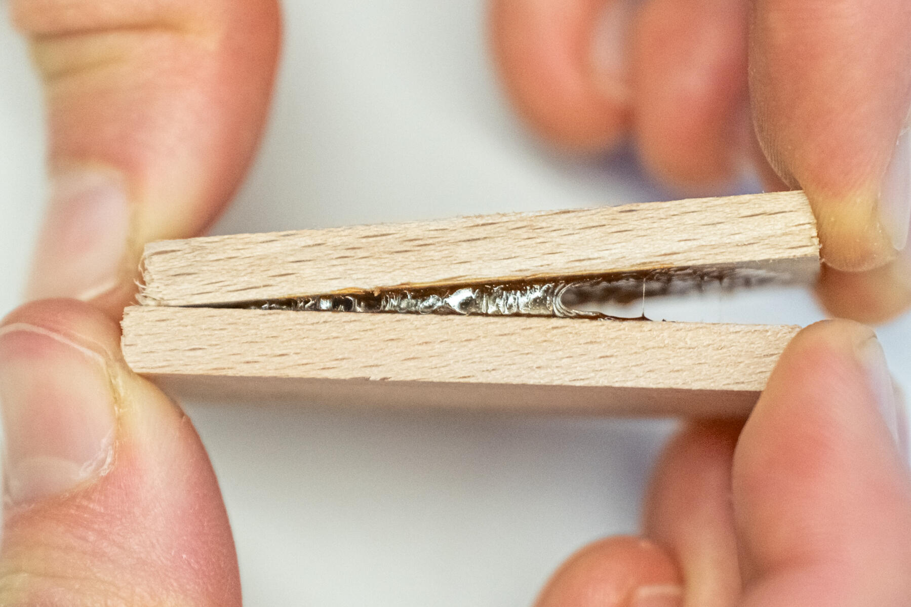 Wir haben eine neuartige Plattformtechnologie entwickelt, mit der wir Proteine gezielt für unsere Klebstoffe anpassen. Dadurch können wir verschiedene natürliche Proteinquellen nutzen – unter anderem aus Reststoffströmen. Anders als herkömmliche Protein-Klebstoffe benötigen unsere Produkte keine chemischen Vernetzer oder nur natürliche Alternativen – und erreichen dennoch eine Wasserbeständigkeit, die mit konventionellen Systemen mithält.
